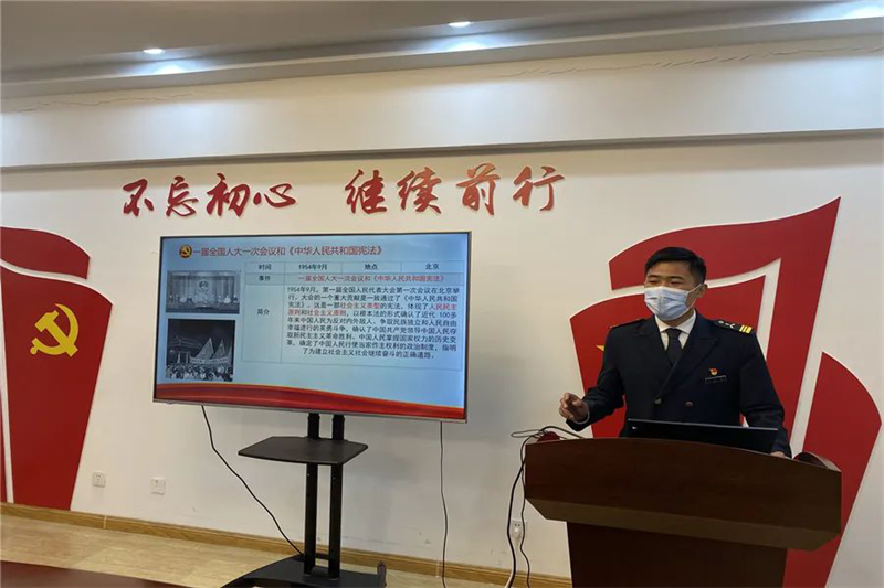 在支部会议上进行“翻转党课”讲解