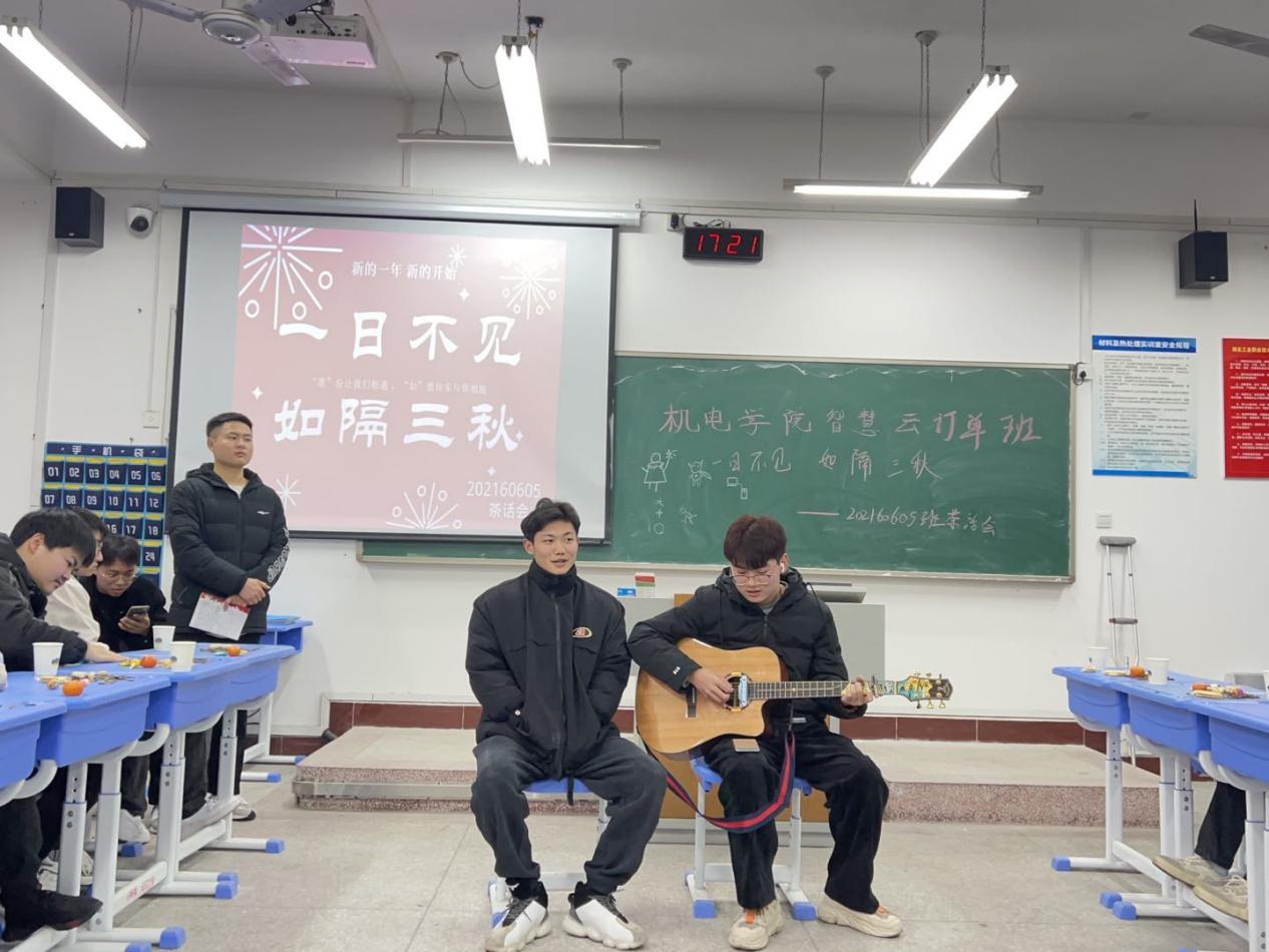 各班级经过辅导员及学生们的精心准备,邀请了负责订单班学生日常管理的刘涛老师,专业课老师纪宏志、唐学东老师一同参加。在活动过程中许多同学都主动与大家分享了自己的寒假趣事、地方风俗习惯等,活动中穿插了才艺表演、互动小游戏和感恩老师环节,将活动气氛一次次推向高潮。