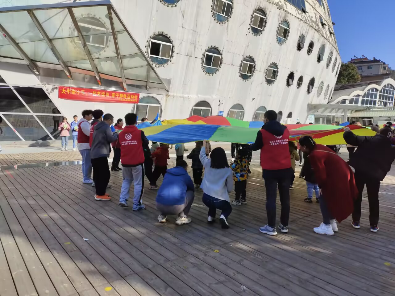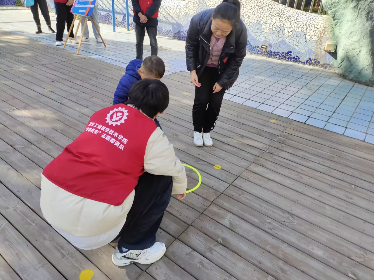 一大早,30名志愿者早早来到活动现场,根据主办方的安排,将运动会场地布置妥当。伴随着小朋友们的欢呼声,我抛你接、小兔跳圈、小鸡下蛋、推独轮车、拔河等运动依次开展,孩子们在家人及志愿者的带领下体验着运动的快乐和竞争的乐趣,随着精彩的比赛一场接着一场,这些来自星星的孩子们参与的热情越来越高涨,慢慢变得大胆、自信起来,活动现场一幕幕精彩瞬间尽情展现。