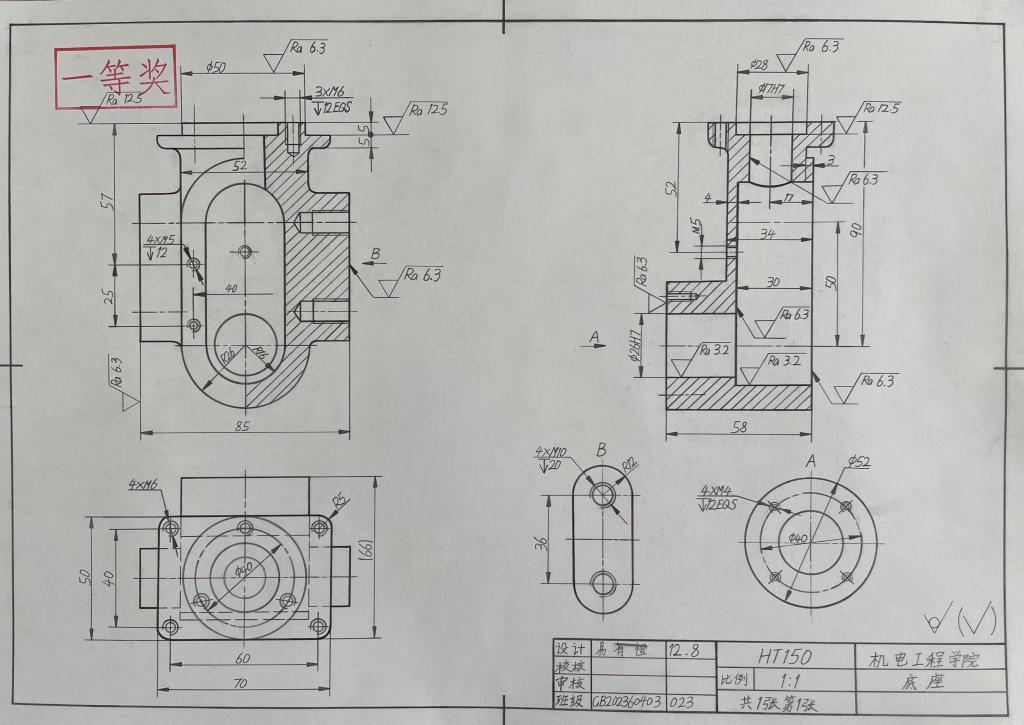本次竞赛是十大信誉官网首次举行机械制图手绘竞赛,2023新生踊跃报名参赛,全院2023级学生共提交260余副手绘机械图纸,经过层层选拔,评选出4名一等奖、9名二等奖、15名三等奖。根据竞赛规程,同学们的获奖等次可对应置换《机械制图》课程成绩。