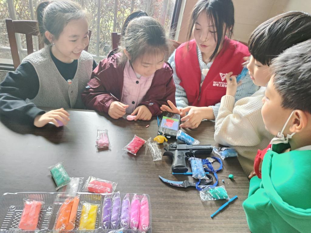 期间,志愿者们到二堰街办锦绣园社区针对社区的小朋友们开展了趣味黏土手工活动,活动中志愿者手把手的给小朋友们演示方法和技巧,孩子们认真讨论模型的构思、颜色的搭配,在志愿者的指导下通过不同颜色的黏土组合和造型搭配进行创作。最终在一双双灵巧的指尖下,诞生出许多优秀的创意作品。
