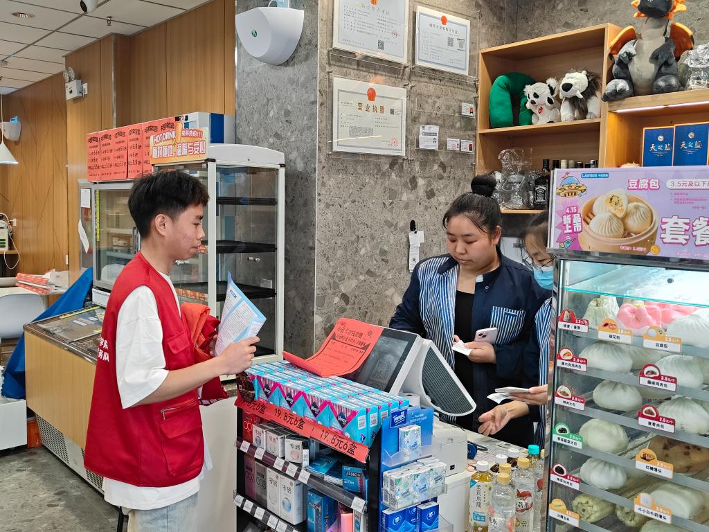 随后盛艳波与志愿者们一起进行了“大学生社区实践基地”的揭牌仪式。仪式结束后三支队伍的志愿者们分别对社区居民开展了反诈宣传、食品安全宣传和用电知识宣讲活动。