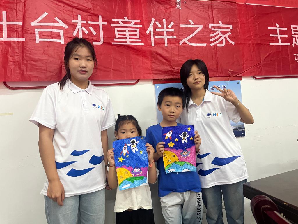 “巧手生花”释放无限创意:村庄的盎然绿意成为天然素材库。在志愿者的引导下,孩子们将收集来的树叶,通过剪、拼、贴的魔法,幻化成翩翩起舞的蝴蝶、优雅开屏的孔雀、憨态可掬的小熊。折纸课上,彩纸在灵巧的小手中翻飞,从千纸鹤到小青蛙,再到复杂的立体花朵,每一步折叠都充满了发现规律的惊喜与创造的乐趣。绘画课上孩子们发挥想象一幅幅“我眼中的机器人”、“我眼中的未来城市”等主题画作跃然纸上。
