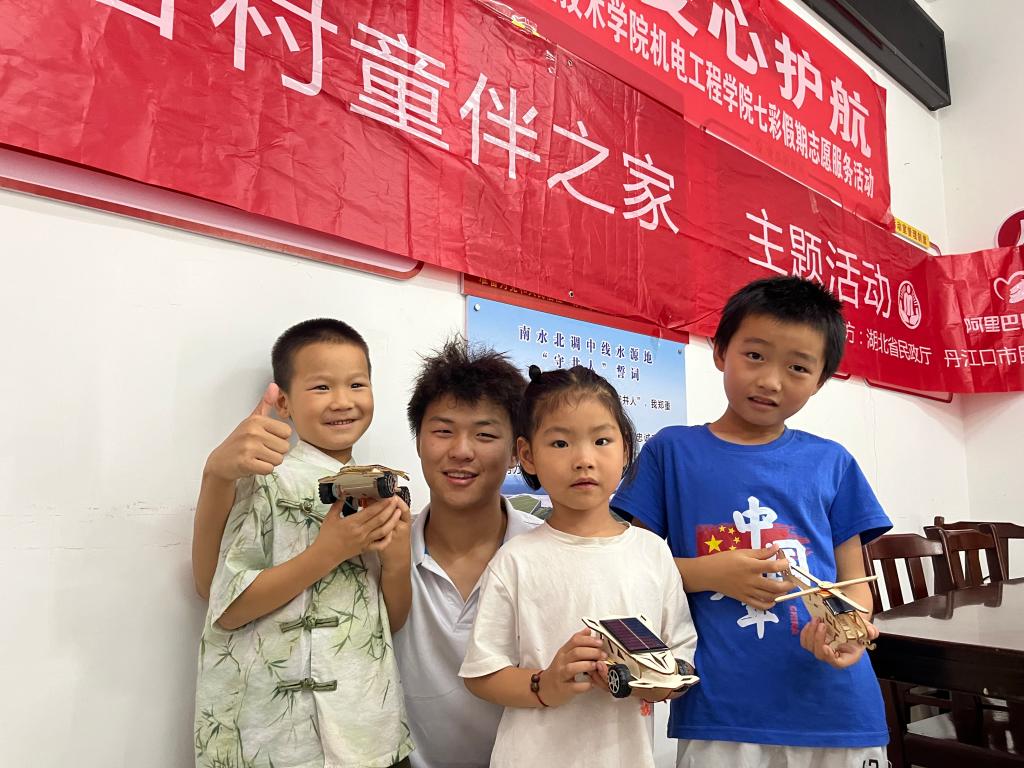 (文/乔冠翔图/付春杨)为丰富乡村留守儿童暑期生活,启迪科学梦想,践行青春担当,7月14日至27日,澳门网投十大信誉平台澳门网投十大信誉平台“科技启智 爱心护航”七彩假期团队深入十堰丹江口市龙山镇土台村,成功开展了为期两周的“科技启智 爱心护航”爱心托管活动。志愿者们充分发挥专业所长,通过一系列精心设计的科技体验与趣味课程,点亮了乡村孩子的暑期时光,在他们心中播撒下热爱科学的种子。本次活动内容丰富、形式多样,旨在让孩子们在寓教于乐中开阔眼界、增长知识。