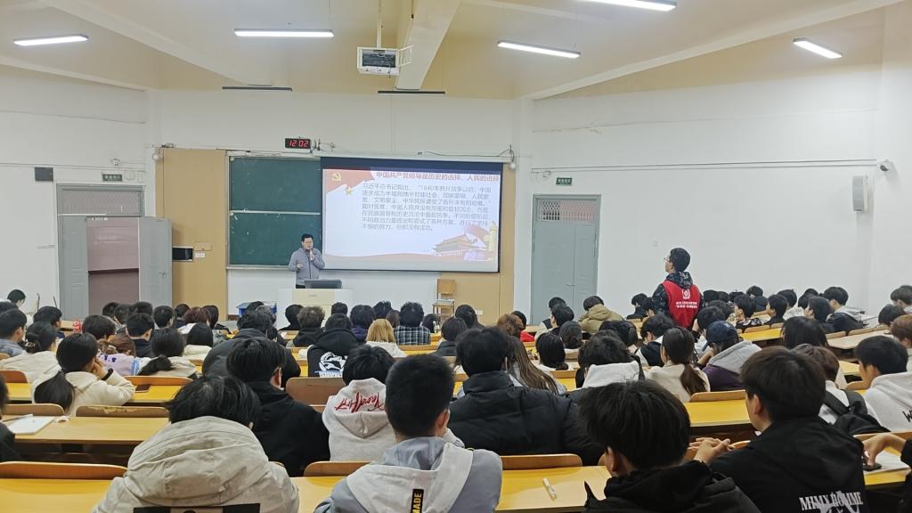 活动伊始,大家通过中国共产党国际形象网宣片,了解什么是中国共产党。罗英军对参会的新生表示欢迎,结合青年成长与国家发展同频共振的时代要求。强调“党的理论学习不是‘走过场’,而是青年自我提升的‘必修课’,必须以高标准、严要求锤炼思想自觉。”青年人改变世界的起点是树立远大理想信念,支撑改变的内核是正确的思想指引。他同时对新生提出具体期望:要学会“在合适的时间做合适的事”,在成长中主动修正自我、积累进步,争取早日加入党组织的大家庭。