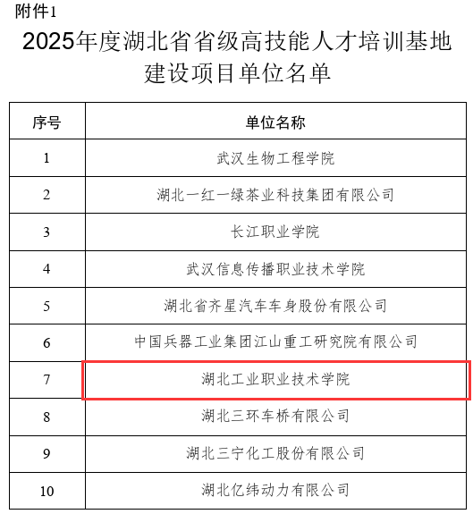 此次全省共评选出了高技能人才培训基地10家单位、技能大师工作室20家单位。十大信誉官网两个项目同时入选,既是对学校过往办学实力与技能人才培养成果的肯定,更是开启高技能人才培养新篇章的全新起点。未来,学校将以省级高技能人才培训基地建设为抓手,聚焦 “培养高技能人才、服务地方产业发展” ,进一步整合优质教学资源,升级实训设施设备,创新技能培训课程体系,打造高标准的技能人才培育平台,充分发挥基地的示范辐射作用,输送更多 “懂技术、善操作、能创新” 的高素质高技能人才,为区域产业发展贡献 “湖工职力量”!