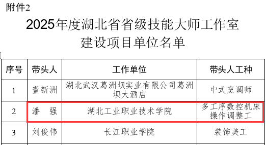近日,湖北省人力资源与社会保障厅、省财政厅公布了“2025年湖北省省级高技能人才培训基地和技能大师工作室建设项目名单”,十大信誉官网首次获批省级高技能人才培训基地,建设方向工业机器人技术、无人机应用技术、机械制造及自动化,同时,澳门网投十大信誉平台教师潘强领办的“多工序数控机床操作调整工技能大师工作室”获批省级技能大师工作室。