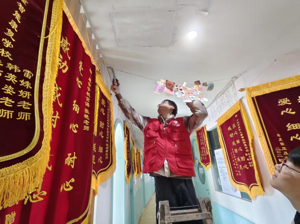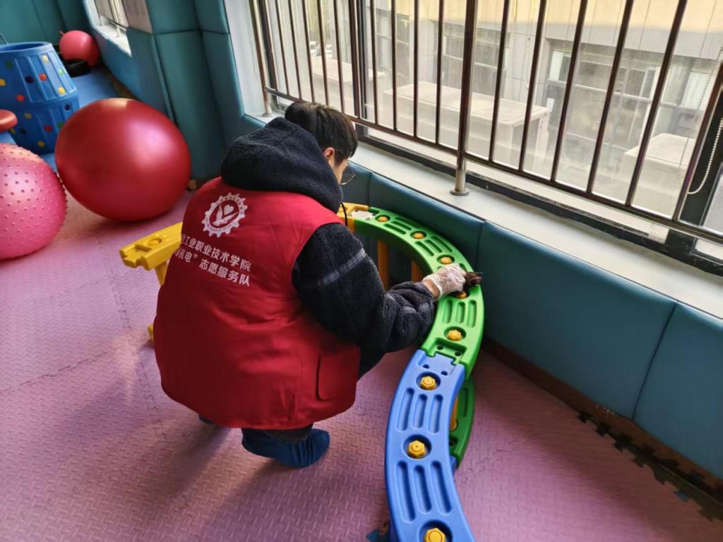 在环境优化环节,学子们秉持机械专业特有的精准思维,对教室、走廊、活动区开展全方位清扫。他们紧盯边角缝隙等卫生死角,凭借专业的安全敏感度反复检查地面防滑情况,为孩子们打造安全整洁的活动空间。