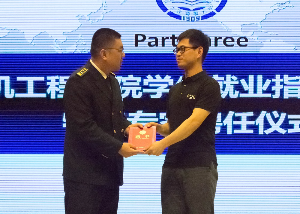 毕鹏杰为张佳欢颁发bat365在线中国官网登录入口学生就业指导专家库首批专家聘书。