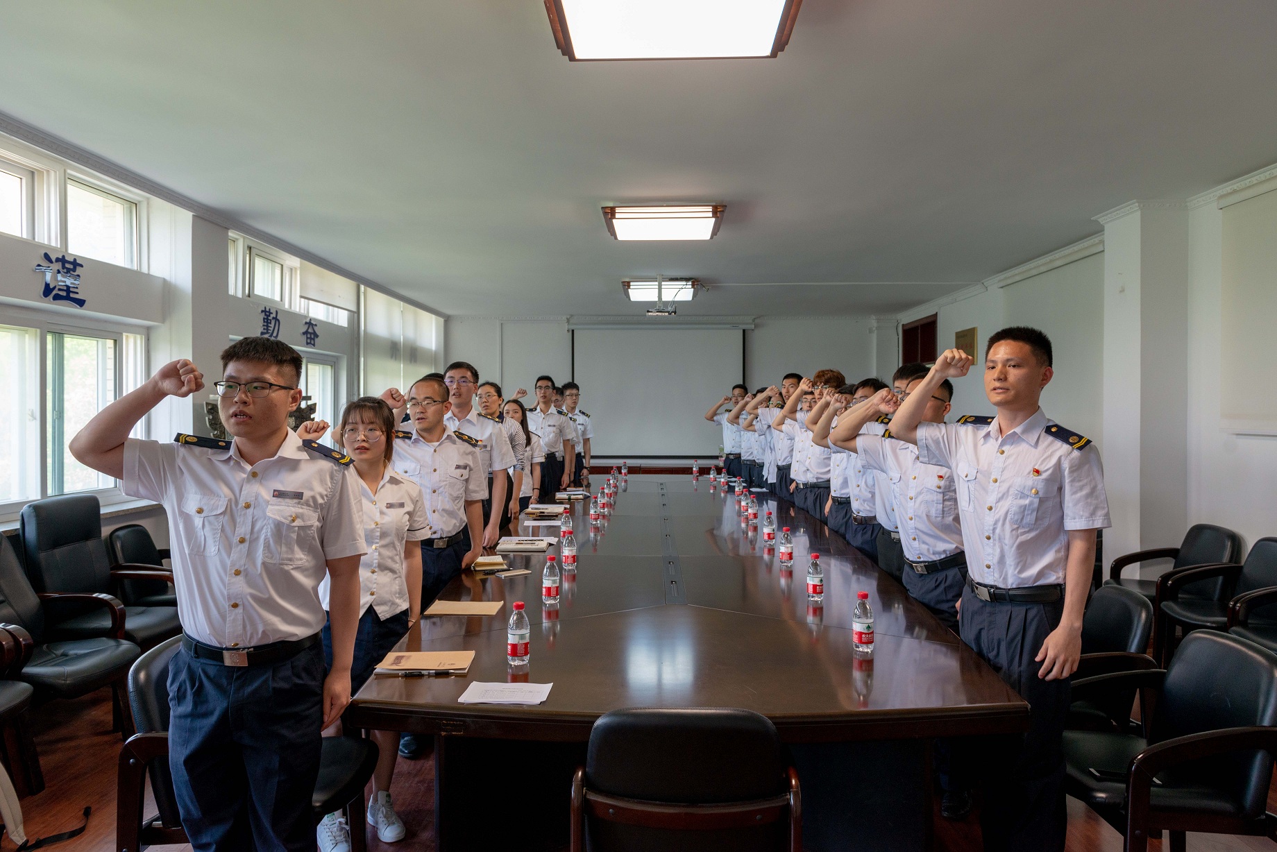 在2018届毕业生即将离校之际,bat365在线中国官网登录入口轮陆中队党支部于6月11日下午在轮机楼317会议室召开了欢送2018届毕业生党员座谈会。bat365在线中国官网登录入口党委书记张术佳、党委副书记兼副院长毕鹏杰、党务办主任张丽莉以及轮陆中队党支部全体党员参加了座谈会。会议由轮陆党支部书记姜昌堃主持。