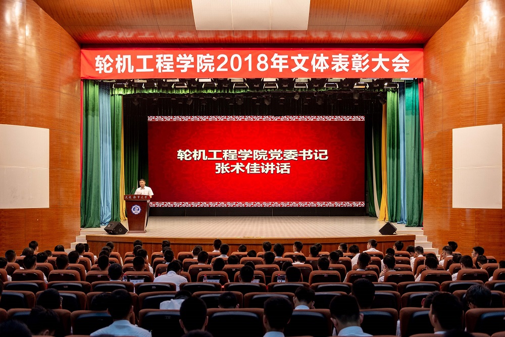 张术佳在讲话中先向各代表队队员、各赛事支持人员和以各种形式参与其中的同学们以及付出辛勤汗水的教练员和指导员老师们表示衷心的感谢。他从“爱校荣院精神,团队协作精神,拼搏奉献精神”三个方面对“兴我海大,爱我轮机”这一口号的精神内涵进行了深刻解读,使大家明白了口号背后所蕴含的精神特质和强大力量。他勉励同学们要继承和发扬轮机人的优秀品质,扎实学习,刻苦钻研,练就过硬本领,积累人生厚度,在大学时代打好人生底色,争做有理想、有本领、有担当的新一代轮机人,在新时代的伟大征程中奉献青春力量。