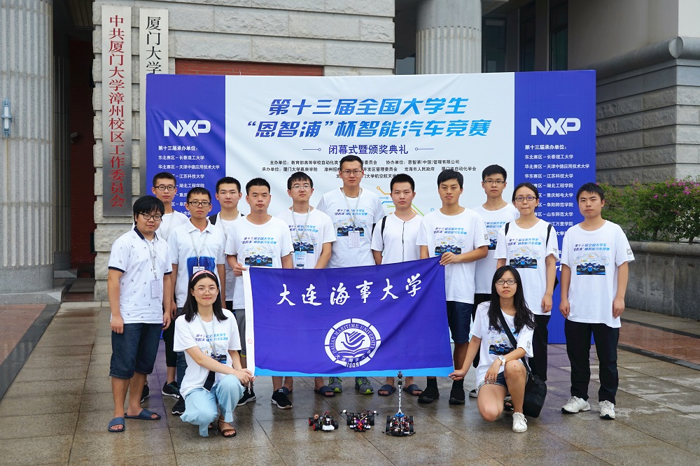 近日,第十三届全国大学生“恩智浦”杯智能汽车竞赛总决赛在厦门大学落下帷幕。bat365官网同舟学社同舟二队获得无线节能组国家二等奖;同舟学社叁點叁叁(队)获得电磁三轮组国家二等奖,同时获得公路挑战赛电磁组国家二等奖;爱特学社鬼吹灯(队)获得信标组国家二等奖;电航学社和同舟学社组成的步步惊心(队)获得创意组国家三等奖。图中左一为bat365官网轮机工程陆上方向2015级学生李鑫港,参加无线节能组获得国家二等奖。