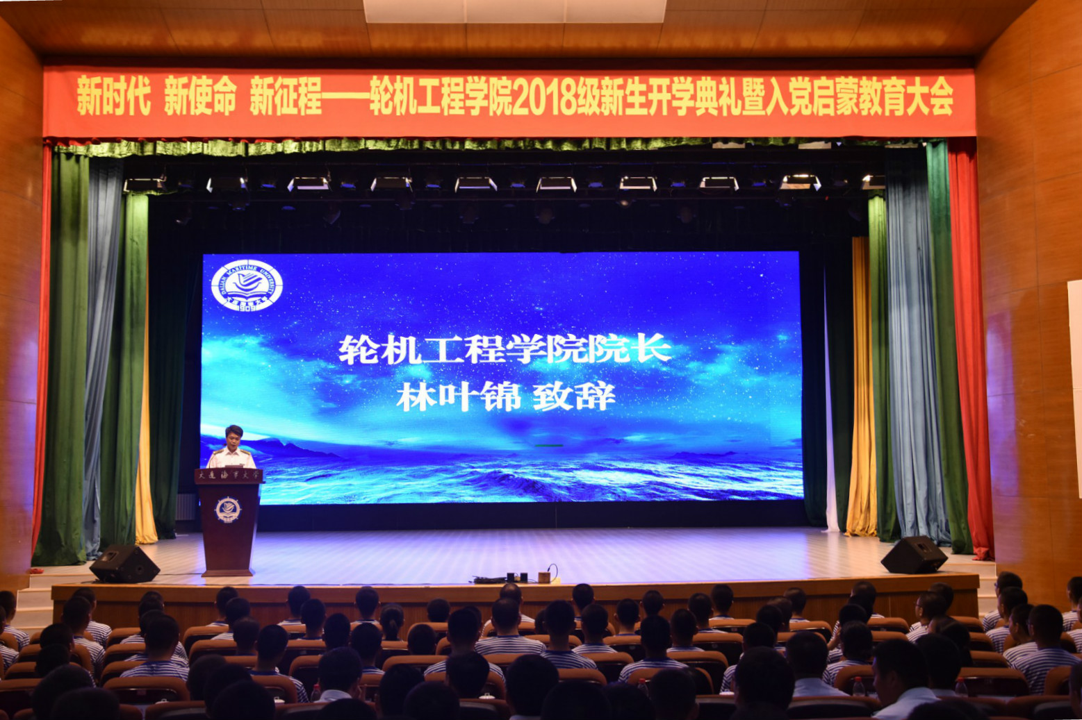 为进一步开展好新生入学教育活动,帮助学院新生更好地适应海大新生活,8月31日下午,“新时代 新使命 新征程”——bat365在线中国官网登录入口2018级新生开学典礼暨入党启蒙教育大会在东山礼堂举行。bat365在线中国官网登录入口院长林叶锦,党委书记张术佳,副院长田昕、纪玉龙,教师代表徐敏义,新生家长代表郑学功,团委书记路浩,轮机大队副大队长程朝阳,2018级新生班主任,新生指导员及指导员助理出席了此次大会。大会由学院党委副书记兼副院长毕鹏杰主持。