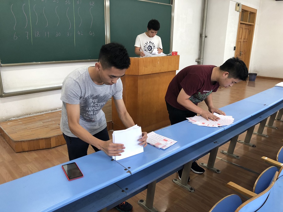 此次考试,由学院老师精心出题,共三门科目,每科有160道选择题,同大证正式考试题型一致。考试自上午八点开始,按照主推进动力装置、船舶辅机、轮机英语的顺序的作答,答完一科将试卷与答题卡上交后可以向监考老师领取下一科考卷,三科全部答完可以离开考场。由于题目较多,答题持续时间较长,同学们略显疲惫,但是从同学们的答题状态可以看出,大家为此次考试都付出了不少的努力,也从侧面突显了集中自习已取得一定成效。考试于下午一点结束,每个教室由专人分别汇总答题卡及试卷,然后进行答题卡读取、成绩登记等工作。