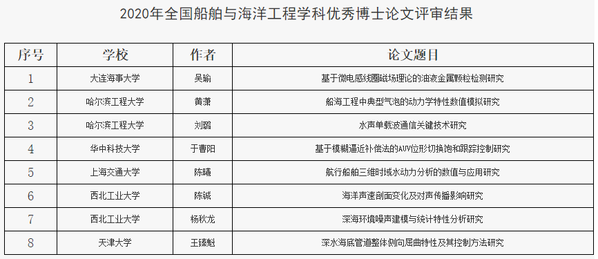 bat365官网博士论文入选2020年度全国船舶与海洋工程学科优秀博士论文