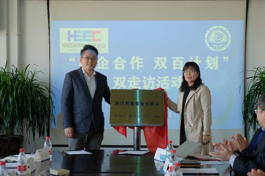 学校创新创业学院院长石丽红与李乔共同为bat365在线中国官网登录入口-博雅工道海洋智能装备联合实验室揭牌。