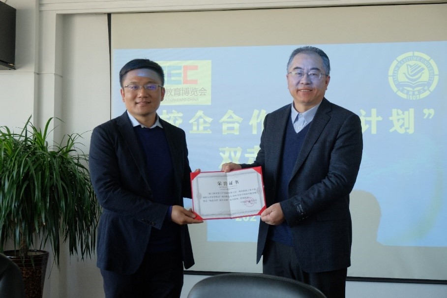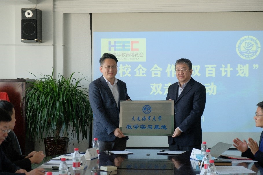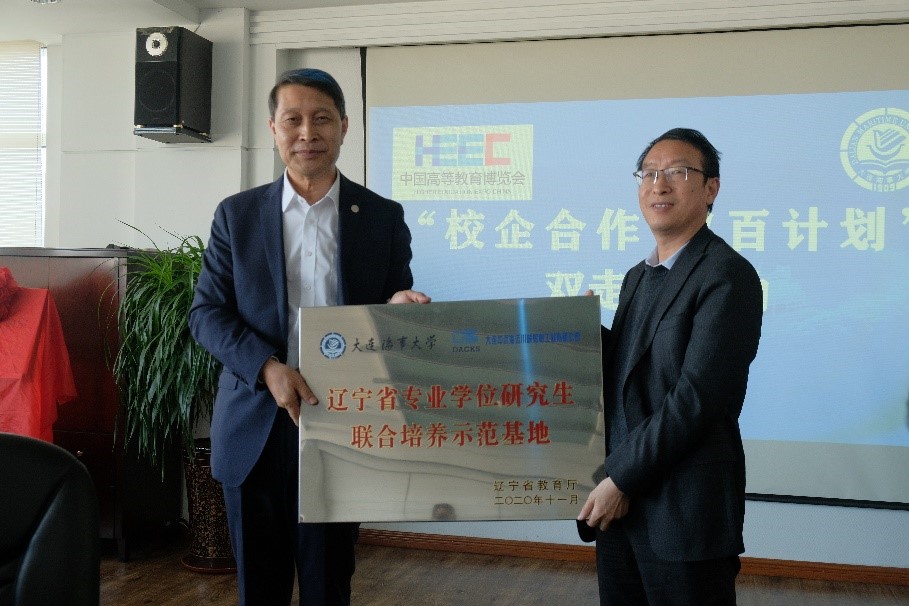赵友涛为大连中远海运川崎船舶工程有限公司颁发辽宁省专业学位研究生联合培养示范基地牌匾。