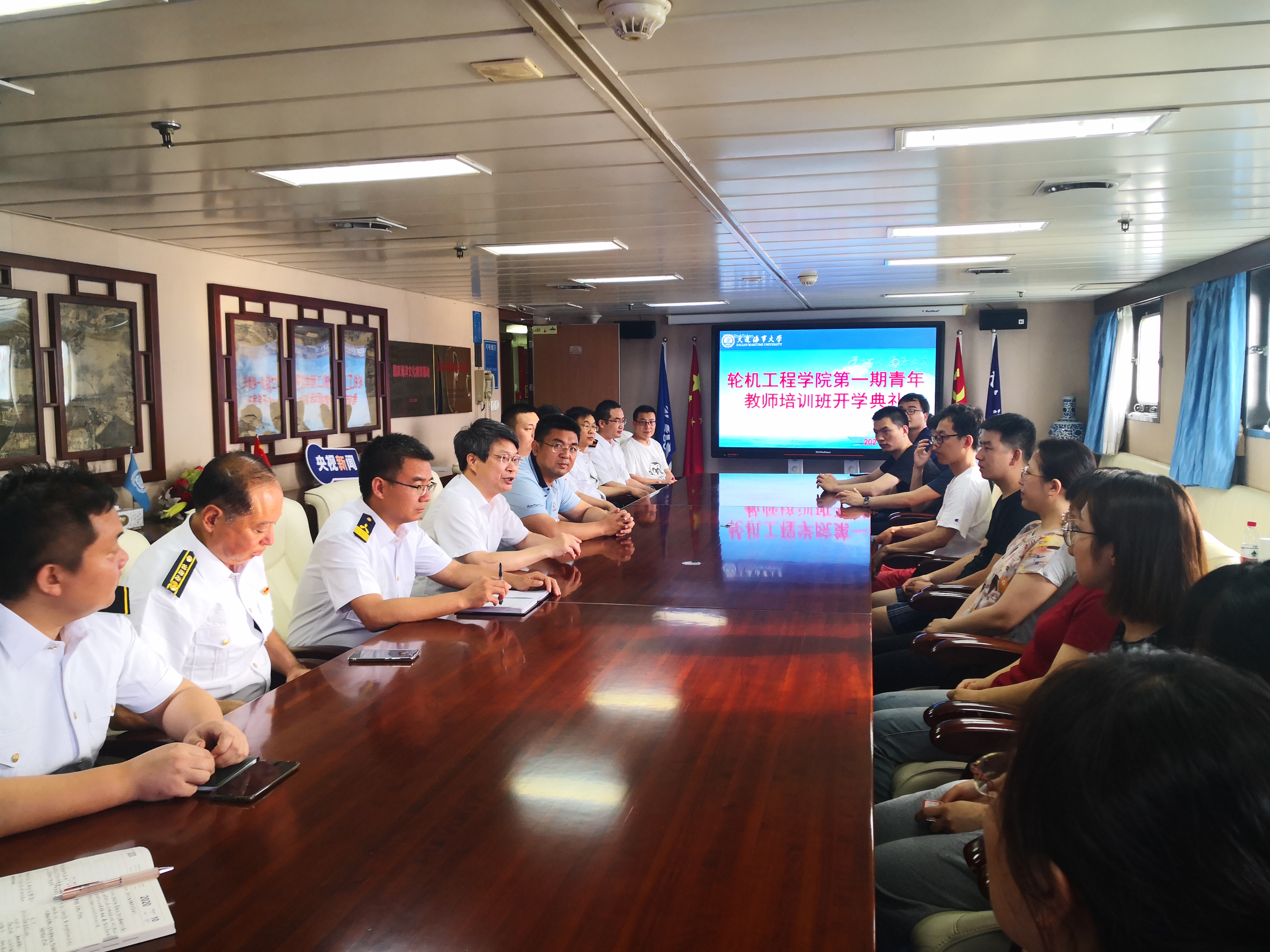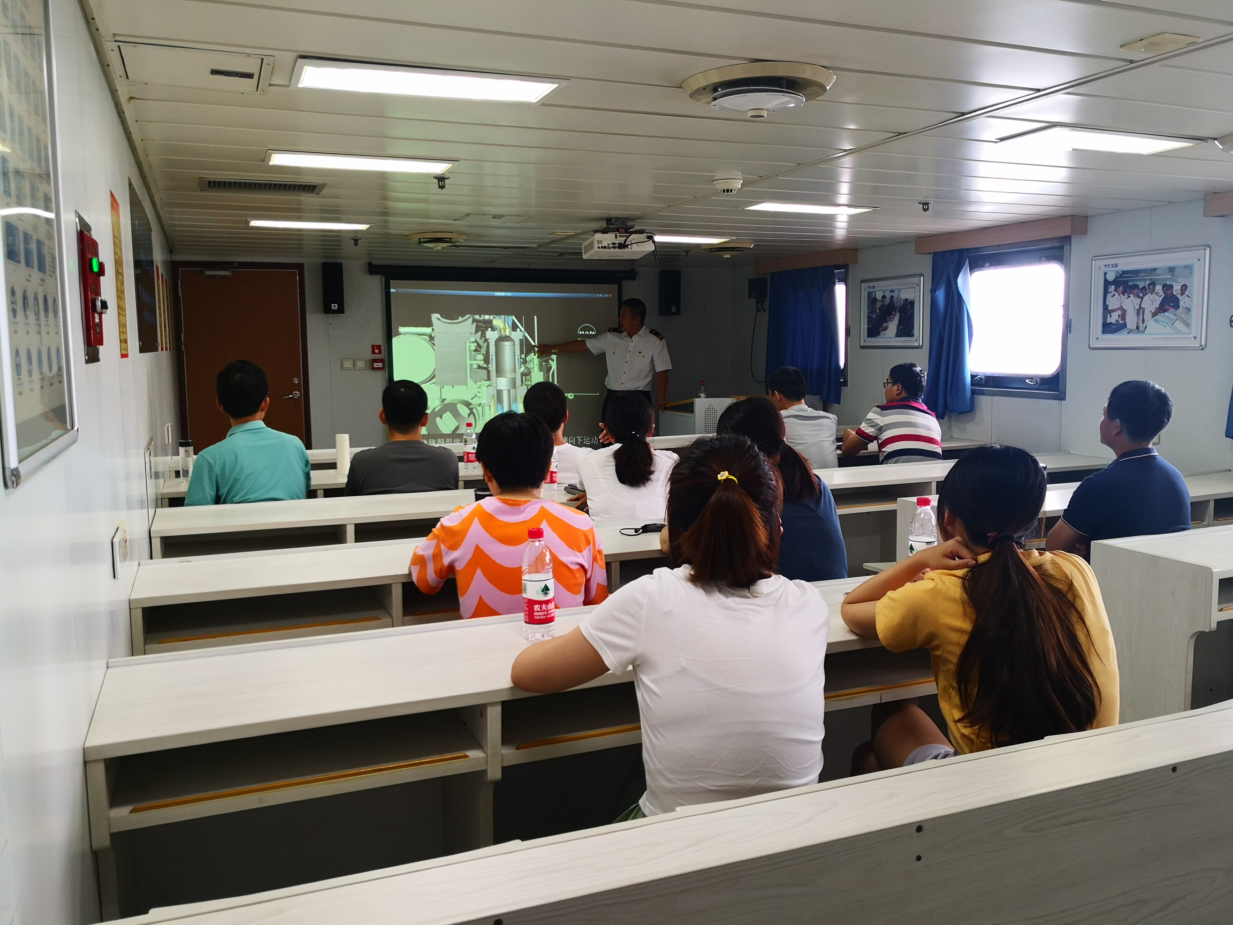 在为期四天的培训过程中,船舶驾驶员、轮机员和指导教师分别就船舶安全、驾驶台设备、机舱设备和系统等内容开展培训。期间,青年教师们还观摩了机舱设备日常维护保养、主机备车操作等实践过程,并针对如何将科研方向与轮机专业相融合进行了多次的研讨、交流和心得分享。