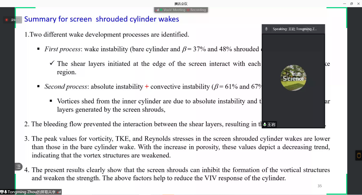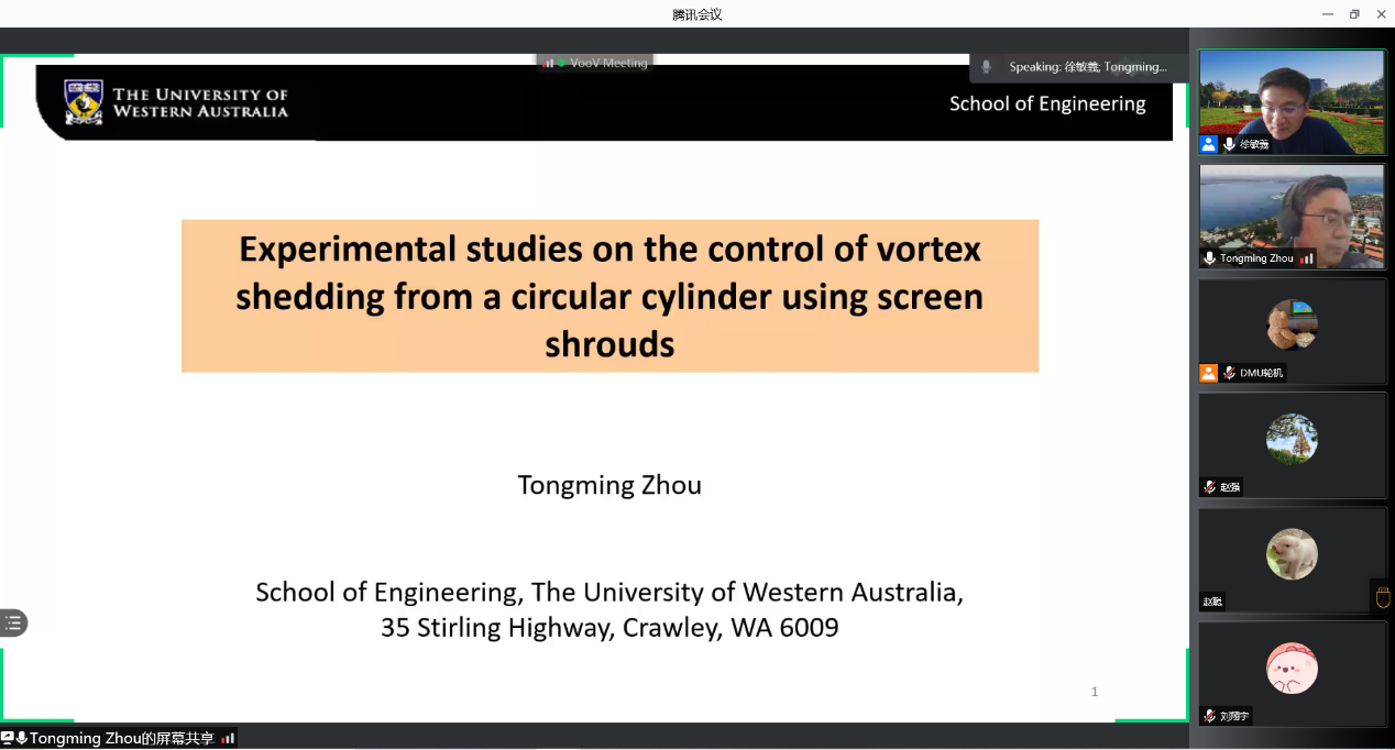 为营造浓厚的学术氛围,提升学生的科研能力,加强国际学术交流与合作,应bat365在线中国官网登录入口邀请,讲座教授——周同明教授于12月17日在线上作学术报告,题为《Experimental studies on the control of vortex shedding from a circular cylinder using screen shrouds》,学校相关学科众多师生参加了报告会,会议由bat365在线中国官网登录入口徐敏义教授主持。