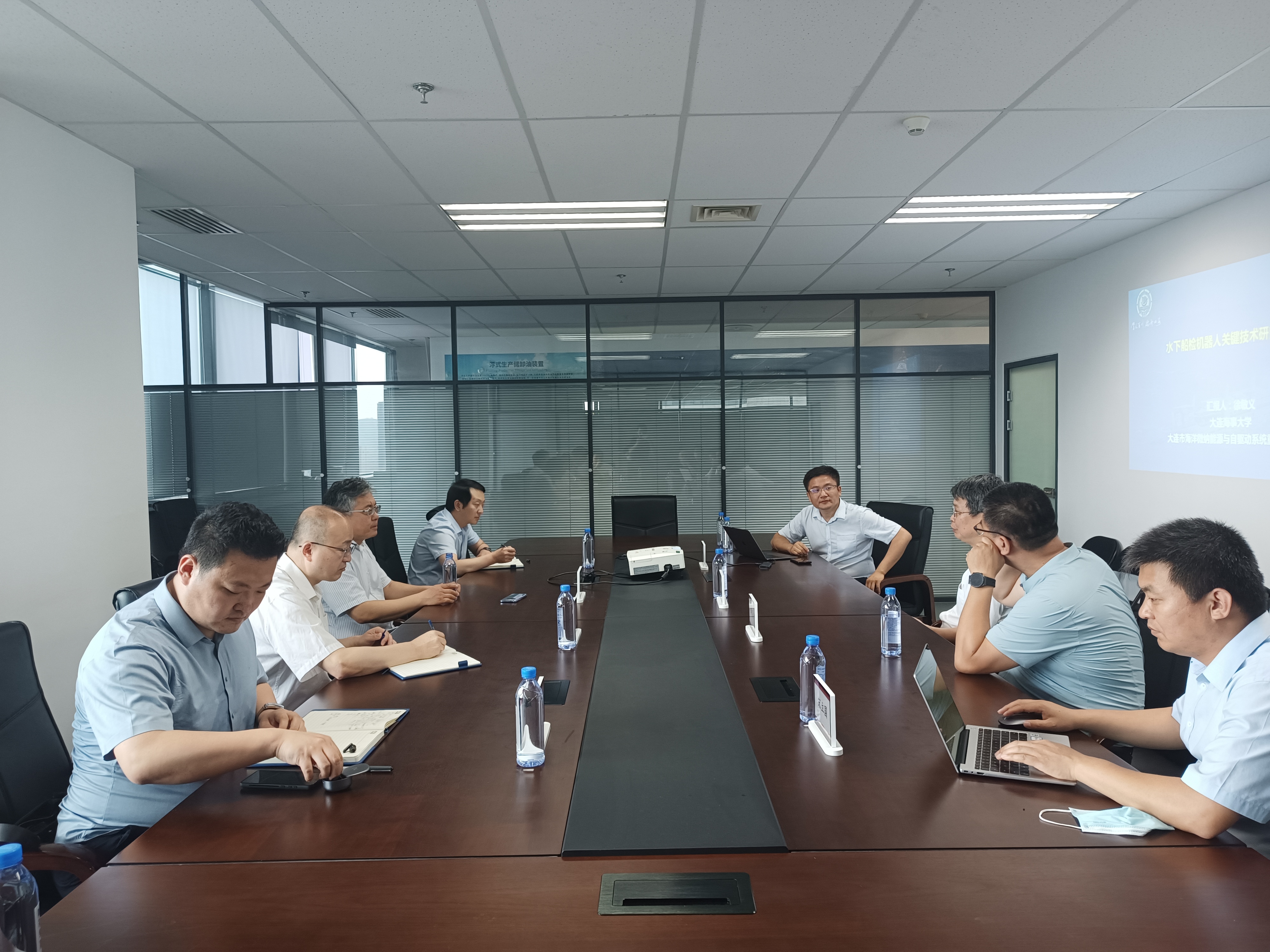 6月29日下午,bat365在线中国官网登录入口与中国船级社大连分社围绕水下船检机器人的市场前景、技术难点、规范标准等工作在海创大厦开展合作座谈。中国船级社大连分社副总经理刘铁波及营运船舶检验处和船用产品检验处相关领导,bat365在线中国官网登录入口院长林叶锦、党委书记毕鹏杰,以及相关教师和学生代表参加了座谈会。