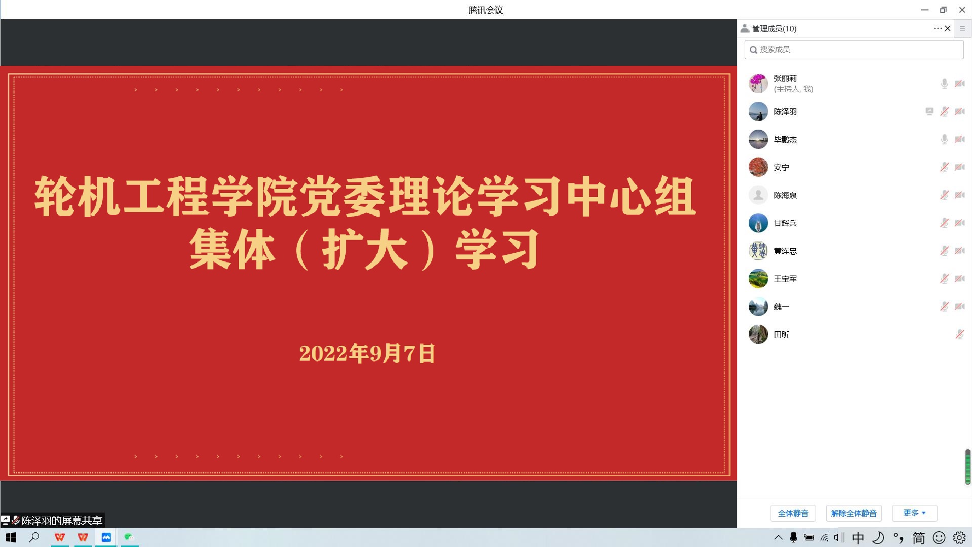 9月7日,bat365在线中国官网登录入口召开党委理论学习中心组集体(扩大)学习会议,党委理论学习中心组成员、党委委员参加学习,会议由党委书记毕鹏杰主持。