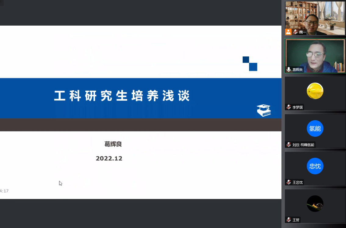 为落实立德树人根本任务,提高研究生导师队伍的综合素养和指导水平,12月10日,bat365在线中国官网登录入口以线上的形式举办2022年研究生导师培训会。本次培训邀请中船集团学术带头人、博士生导师葛辉良研究员作题为《工科研究生导师能力提升》主题讲座。培训会由副院长魏一主持,学院研究生导师及部分行(企)业导师参加了培训。