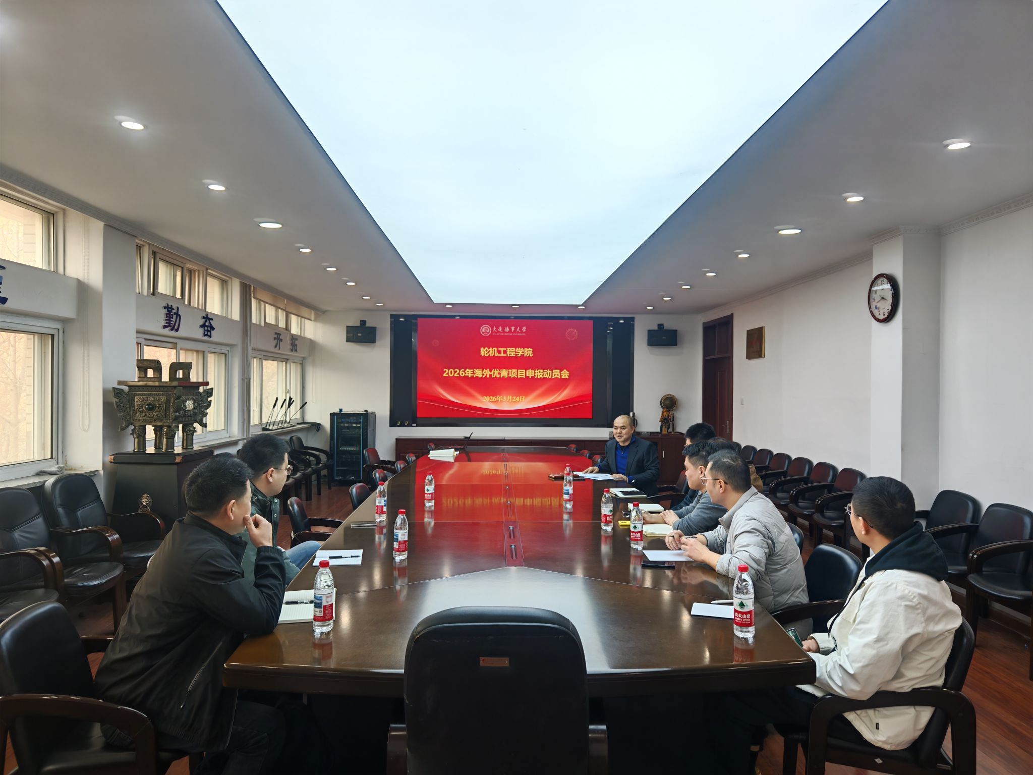 为吸引和鼓励在船舶与海洋工程等领域已取得较好成绩的海外优秀青年学者来校工作,提前谋划、全力做好2026年“海外优青”项目申报工作,3月24日,bat365在线中国官网登录入口在轮机楼317会议室召开“海外优青”项目申报动员会。学院有海外教育背景及访学交流经历的教师参加了会议。会议由学院院长张洪朋主持。