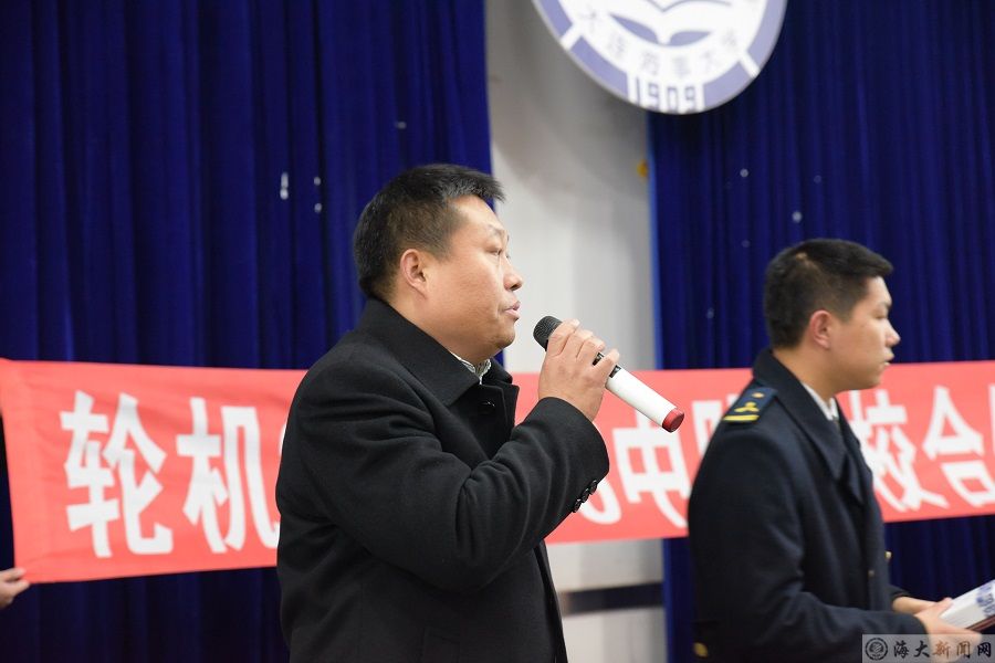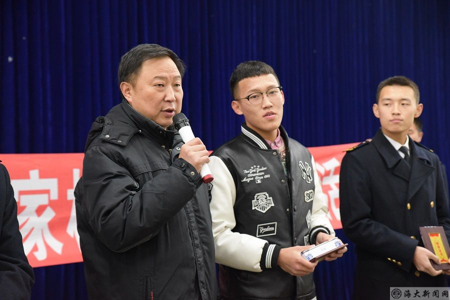 为进一步畅通家校沟通渠道,完善家校合力体系,同时为给“中队最闪星”活动获奖同学颁发礼品。bat365在线中国官网登录入口轮机2014-3中队于11月29日在东山大学生活动中心举行亲情颁奖仪式。中队学生王年和高峰两位同学的家长受邀担任颁奖嘉宾。