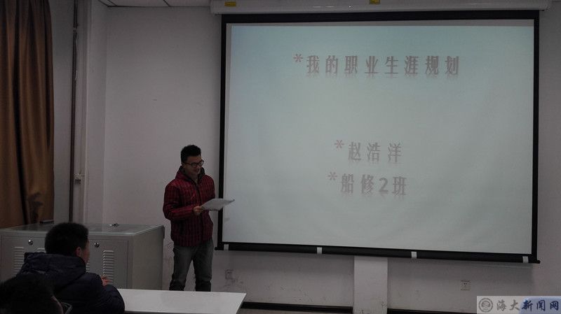 11月26日晚,轮陆2015中队按计划于启航楼多媒体教室举行了中队的职业生涯规划比赛。中队指导员郑哲、中队各班指导员助理担任本次大赛的评委。经过现场抽签,12位选手依次进行了职业生涯规划报告的展示。选手们通过SWOT分析、MBTI测评、霍华德职业测评等多种手段,对自己的兴趣与价值观进行了探索。在职场模拟问答环节,每位同学通过抽签选择自己的职场问题,选手们分别回答了有关“诚信”、“职场礼仪”、“团队建设”、“终生学习”等多个方面的问题。参赛选手们精彩的回答,对其他同学的职业发展观产生了积极的引导作用。最终,经过评委老师的打分,来自船修2班的王洪来、陈远东同学获得了代表中队参加学院选拔赛的机会。