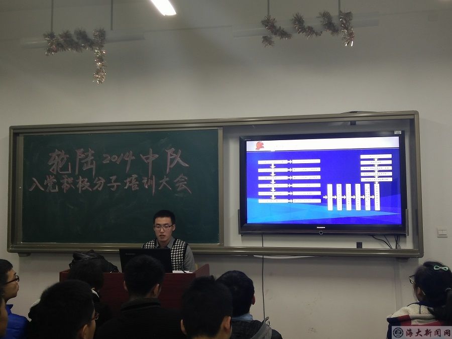 为了帮助和促进同学们系统地学习党的基本知识、基本理论和基本路线,端正同学们的入党动机,向同学们详细介绍入党审核流程。bat365在线中国官网登录入口轮陆2014中队于11月11日晚六点半在积学楼512开展入党积极分子培训大会,轮陆2014中队全体积极分子参加本次培训,指导员姜昌堃主持会议。