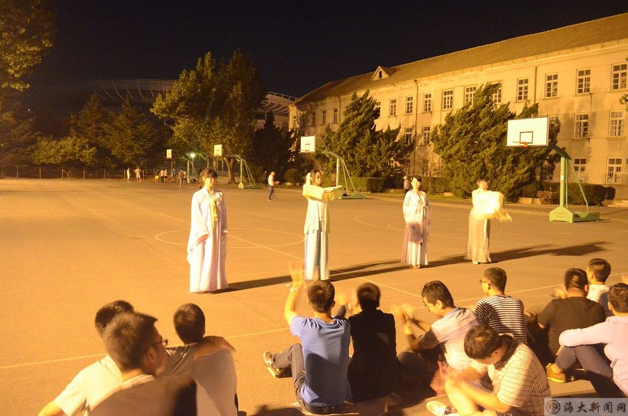 晚会上,首先由中队团总支宣传委员王思远播放了视频短片《大一风云》,短片中再现了同学们在大一学习生活期间的点点滴滴,每一个故事情节都引起了同学们的强烈反响。接下来,在主持人简短的开场白后,晚会演出正式开始。同学们在热烈的掌声中,依次上台表演,唱歌跳舞,尽显才艺。期间,中队还邀请了来自学校汉服社的同学们前来表演舞蹈,与同学们共度中秋佳节,晚会氛围被一度推向了高潮。表演过程中同时穿插了猜字谜与歌词接龙小游戏,丰富了晚会内容。在同学们的欢笑与掌声中,晚会也临近末尾。最后,由中队干部为同学们发放了月饼,大家一起品尝赏月,本次中秋晚会在副中队长赵伟博,副指导员赵大胜及各班班长合唱的《海大人》之中落下帷幕。