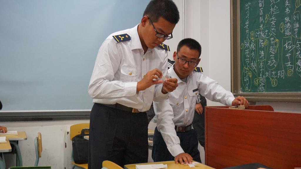 中队干部选拔完毕以后,各个区队在指导员助理的组织下,进行了区队干部内部选拔,选拨以投票形式进行,由参选同学上台进行竞选演讲后,区队全体同学投票选出相应人选。选拔结束后,中队于10月8日邀请轮机2013-2中队指导员张亚培及学生干部对新生学生干部进行了培训,主要从内务卫生、纪律检查两个方面进行了细致的讲解和手把手的指导。