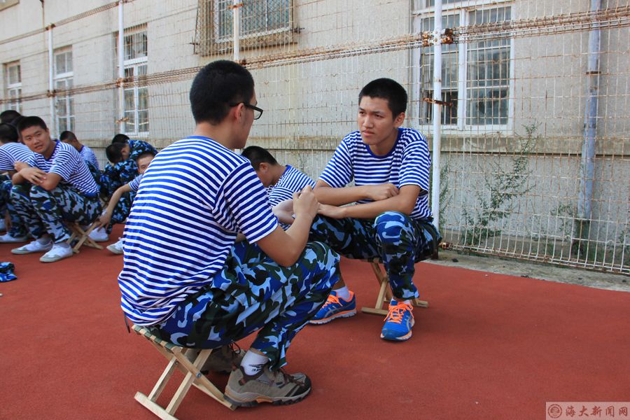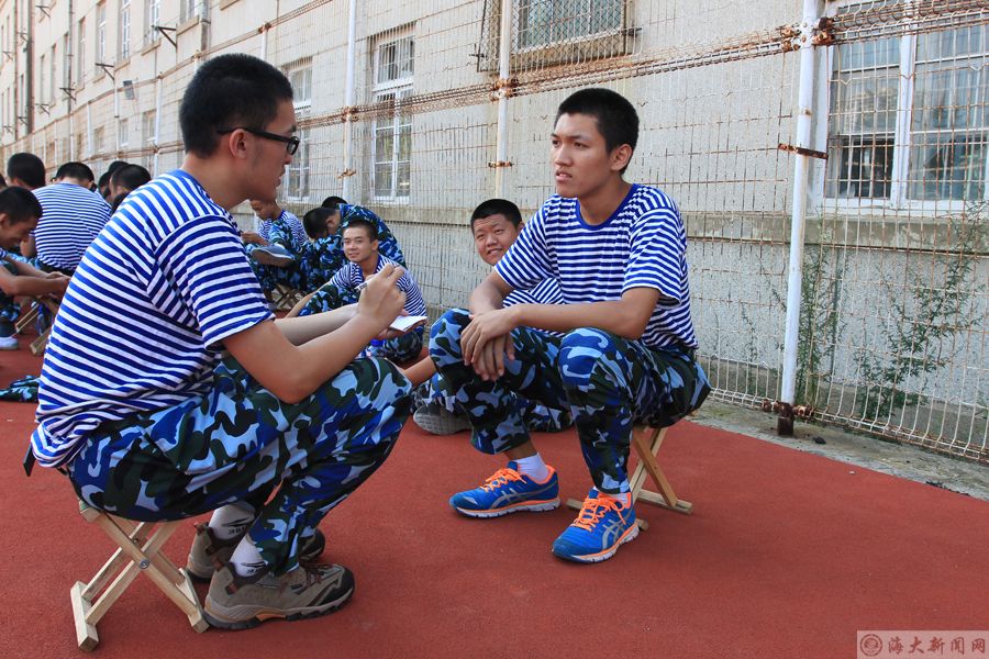 学院军训宣传报道组织采访方队带伤训练成员