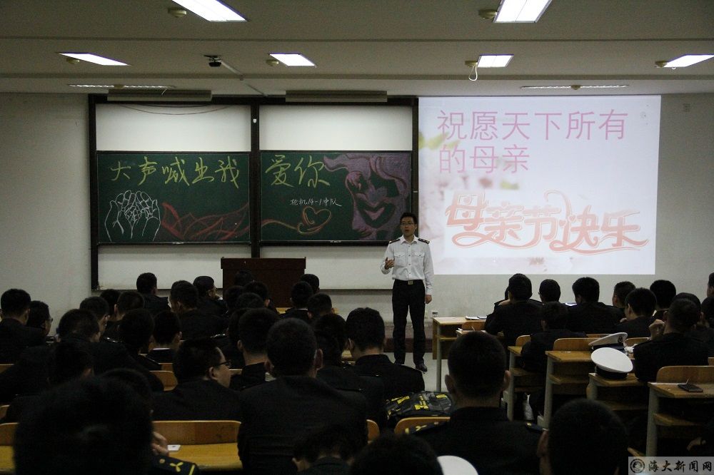 为引导学生树立正确人生观、价值观,培养学生感恩意识,bat365在线中国官网登录入口轮机2014-1中队于5月10日晚在远航楼113教室组织召开了“大声喊出我爱你”母亲节感恩主题中队会。中队指导员化鹏以及全体同学参加了本次活动,二区队团支书陈杰担任本次活动主持人。