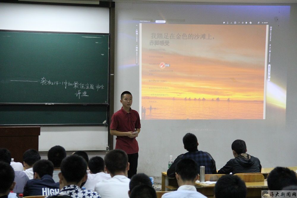为了丰富同学们课余生活,扩展知识面,增进对家乡的热爱和了解,5月24日晚,bat365在线中国官网登录入口轮机2014-1中队在远航楼113教室举办了“我爱我家”最佳主题班会评选活动。指导员裴长盛、陈强、化鹏及部分指导员助理出席了本次活动,活动由团支书陈杰主持。