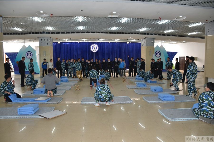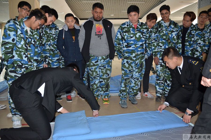 下午,轮机的同学们带领交流生们一同参观了海华6公寓寝室文化,在轮机同学的详细介绍下,交流生门了解到中队的内务标准以及相应的半军管规章制度,切身感受到半军管文化。紧接着,所有同学在东山大活开展了名为“One World One Quilt”叠被比赛,在双方同学的协作下,一个个“豆腐块儿”呈现在大家的眼前,最后由陈强评选出一二三等奖。之后,大家跟随副中队长赵伟博来到了一舍前的综合素质拓展区,在轮机同学们的带领下,交流生们切身体验到了综合素质拓展训练全过程,并纷纷表示在今后的学习生活中更加需要注重锻炼身体,强化身体素质。最后,同学们来到东山体育场举行了趣味运动会,大家齐心协力完成了8人9足趣味竞赛,活动中同学们团结协作,互帮互助,表现出了良好的团队精神,最终经过激烈角逐评选出了前三名,并由张肃和陈强为大家进行了颁奖。