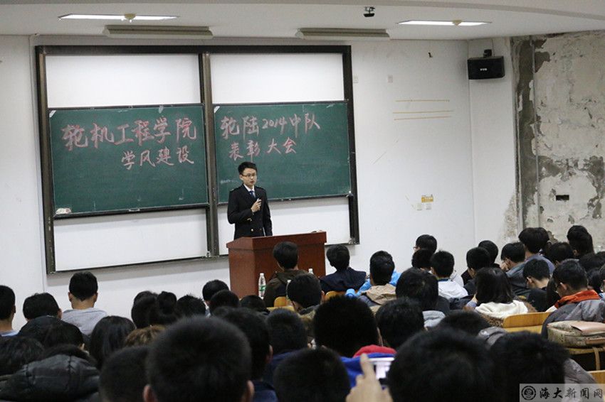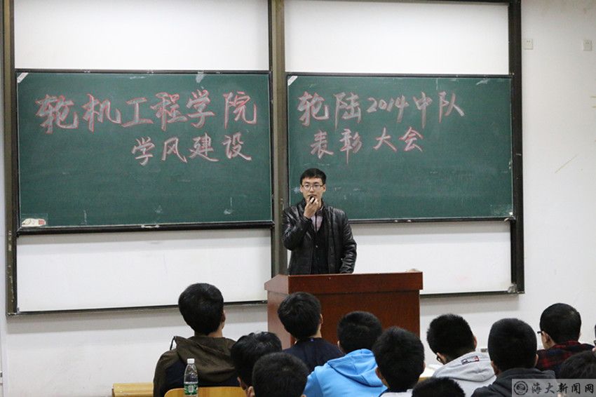 为表彰先进典型,发挥榜样的示范引领作用,提高中队同学的学习热情,促进中队良好学风的形成,4月12日晚,bat365在线中国官网登录入口轮陆2014中队在远航楼101教室召开了中队学风建设表彰大会。指导员姜昌堃、全体指导员助理和中队全体同学参加了本次大会,会议由指导员助理洪云主持。