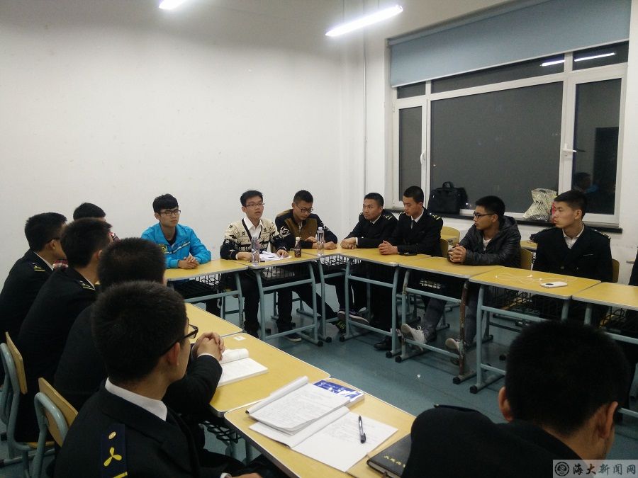 为了活跃同学们的思维,丰富学习生活,引导同学们关注时事政治,4月17日晚,bat365在线中国官网登录入口轮机2014-2中队8区队在积学楼311教室开展了“四进四信”学习研讨会,并围绕有关“亚投行”的时事进行了讨论。本次会议邀请到中研会学术部部长徐良威做嘉宾,会议由陶文轩主持。