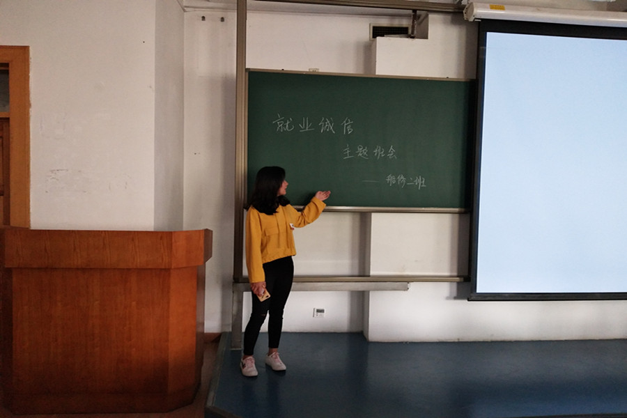在中队会中,首先由船机修造一班团支书申子玉同学通过讲诉某位学长不诚信就业的故事来切入主题,通过真人真事使同学们在轻松愉快的氛围中认识到诚信的重要性。再次由船机修造二班团支书付祎雯同学,从求职自荐、签订协议、踏实工作、履行义务等角度出发,对“就业诚信”的具体内涵进行了简要叙述,使大家明确了班会主题及内容,指出诚信就业的重要意义。最后由船机修造三班团支书马小轩同学为同学们举例说明了目前应届毕业生在就业时的不诚信现象,让同学们意识到在今后就业过程中,诚信是必不可少的一项基本素质。与会期间,其他同学也畅所欲言,结合自身经历说出了内心的想法,同学们纷纷表示,在今后的日子里会诚信就业,养成诚信就业观念。