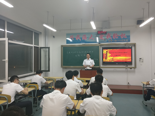 紧接着,党支部书记黄晓华组织与会同学以朗诵的形式学习了《习近平总书记关于青年学生成长成才和教师思想政治工作重要论述摘编》,通过对摘编的深情朗诵,同学们深切感受到习近平总书记对青年一代所给予的期望,学习到青年学生应坚定理想信念,树立远大志向,应将自身成才发展与祖国的复兴紧密相连,身为轮机人的我们应有“振兴航运,富国安邦”的大格局和大胸怀,应将个人发展与海洋强国事业紧密相连。