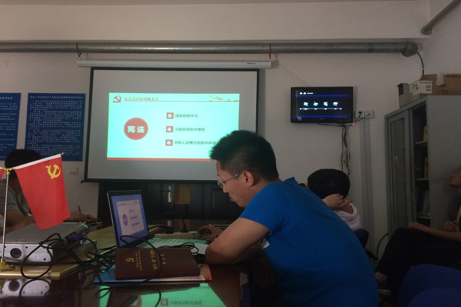 为积极响应学校《关于组织开展尊崇宪法 学习宪法 遵守宪法 维护宪法 运用宪法主题宣传教育活动的通知》,深刻学习领会第十三届全国人民代表大会第一次会议通过并实施的《中华人民共和国宪法修正案》蕴含的重大现实意义和深远历史意义,轮机2016级研究生党支部于6月12日海华八公寓党员活动室开展了“尊崇宪法 学习宪法 遵守宪法 维护宪法 运用宪法”主题学习会议,会议由党支部副书记高梓博主持。