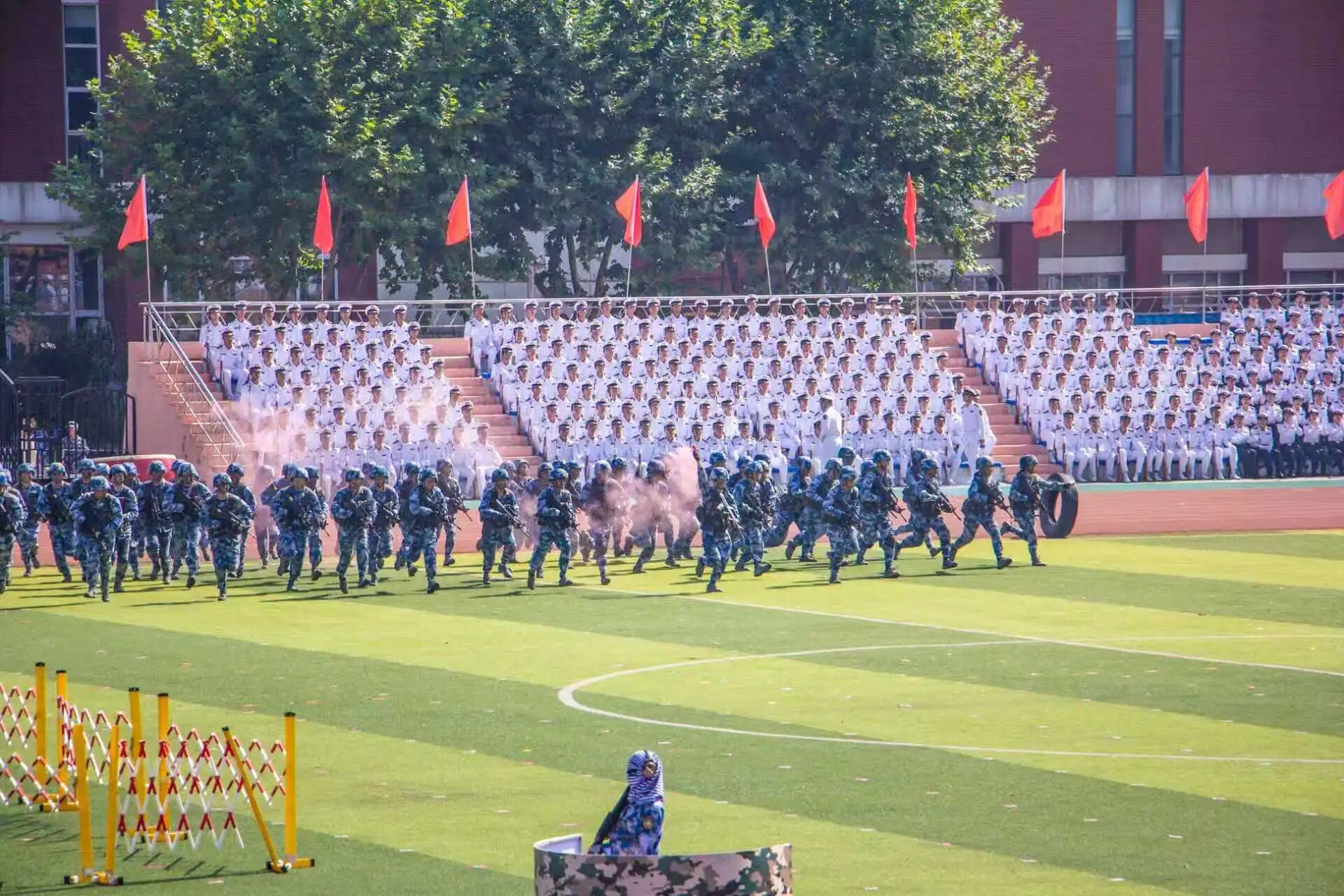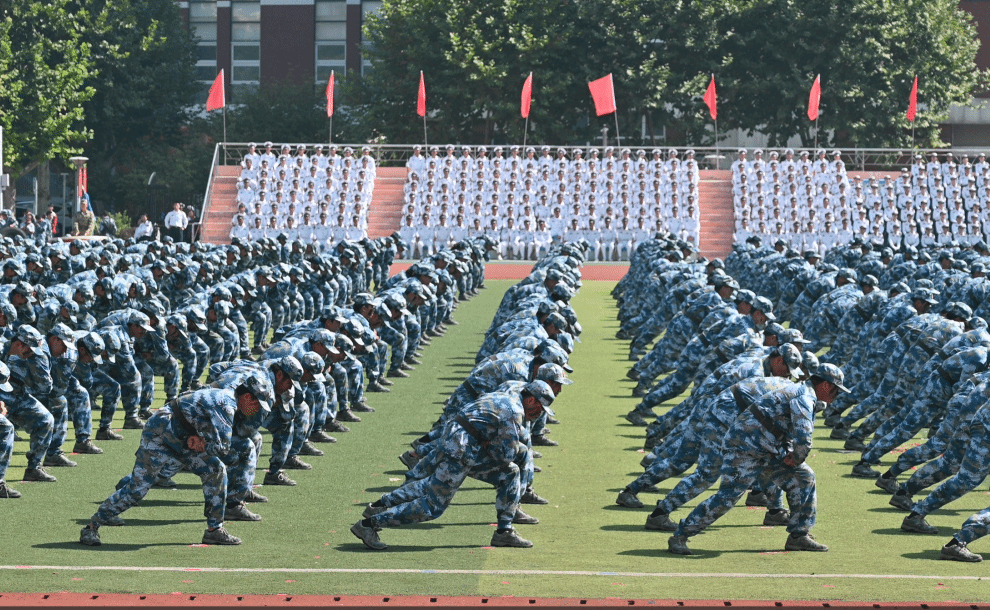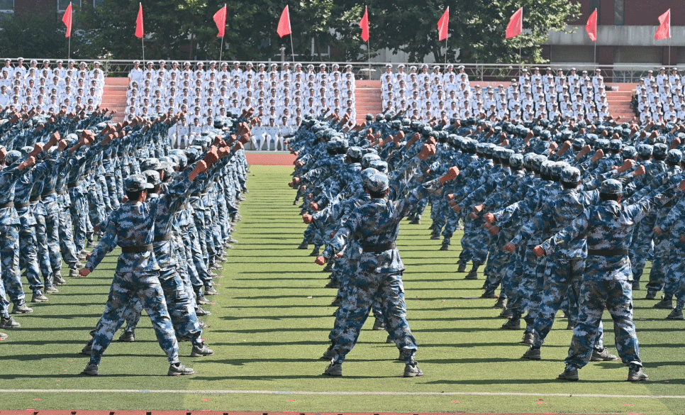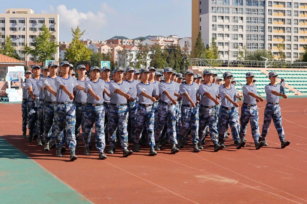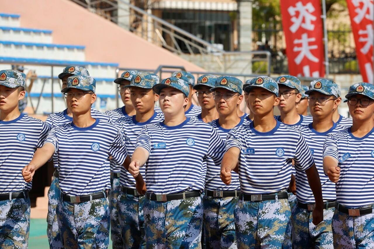在班队列展示中,轮机学子们以挺拔的身姿迎接检阅。正步走铿锵有力,步伐整齐划一,彰显坚毅与自信;齐步走稳健有序,整队如一,展现高度默契与纪律;停止间动作干净利落,令行禁止之间透出昂扬斗志。整场展示既是训练成果的集中体现,更是轮机新生精神风貌的生动写照。