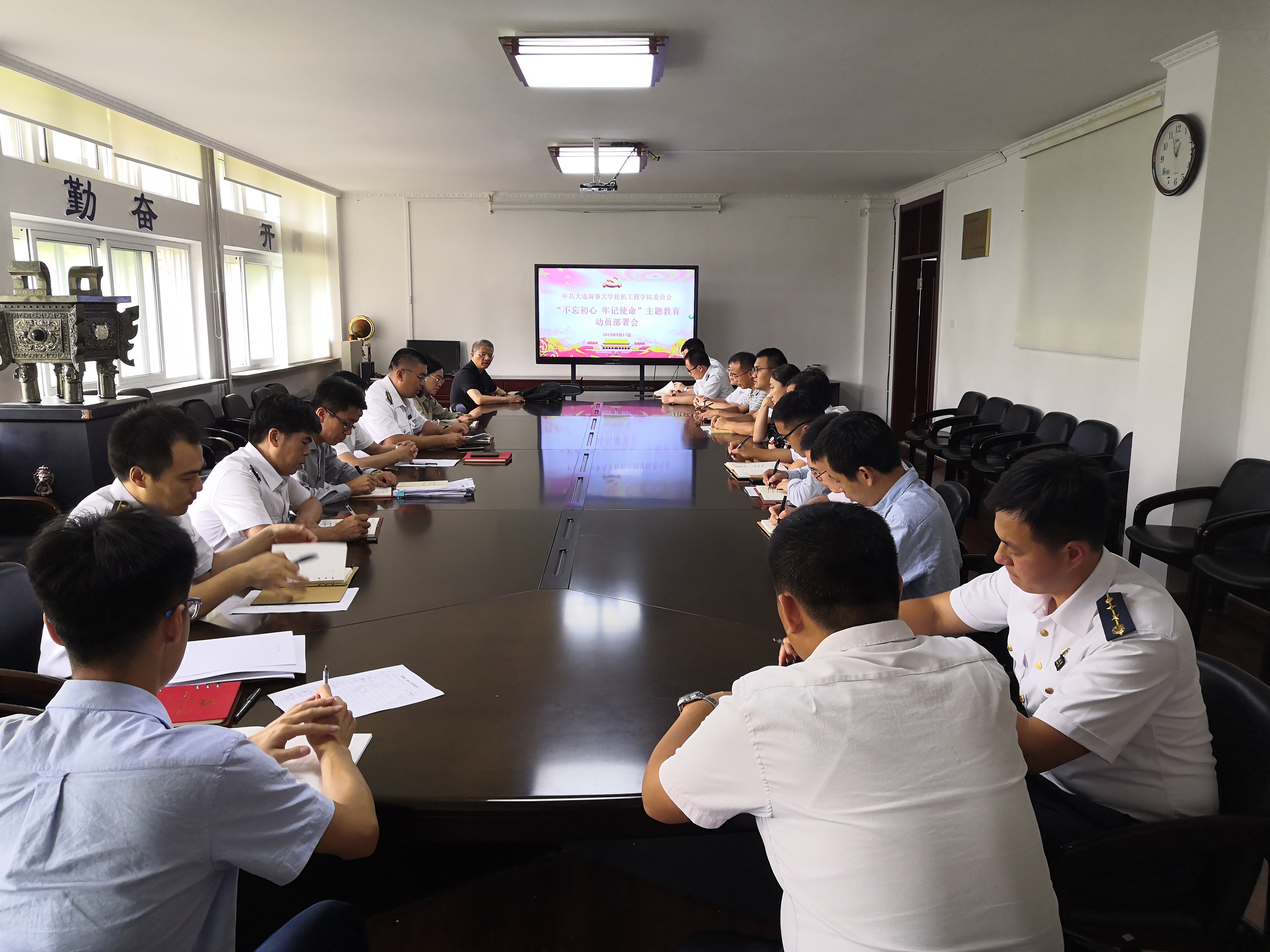 按照学校党委《关于开展“不忘初心、牢记使命”主题教育的实施方案》要求,9月17日下午,bat365在线中国官网登录入口党委在轮机楼317会议室召开了“不忘初心、牢记使命”主题教育动员部署会。轮机学院领导班子成员、党委委员、学院教工和学生党支部委员参加了会议。会议由学院党委副书记、纪委书记毕鹏杰同志主持。