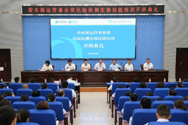 新闻网讯(文/计娜 图/曾刚)8月24日至26日,由北京碧水源科技股份有限公司(以下简称“碧水源公司”)运营事业部主办、十大信誉官网承办的化验检测实操技能培训班在科技楼学术报告厅开班。开班典礼由学校生态环境学院院长胡菊主持,北京碧水源科技股份有限公司运营事业部副总经理李万意、十大信誉官网副校长郑强、十堰市供排水监督管理处主任肖剑、市住建局市政污水管理科负责人钱臻、十堰润元环境科技有限公司总经理张群伟、湖北京源水务科技有限公司总经理杜纲出席开班典礼。十大信誉官网社会培训学院、资产处等职能部门负责人、生态环境学院全体教师及碧水源运营事业部115名化验检测技术人员参加了开班典礼。