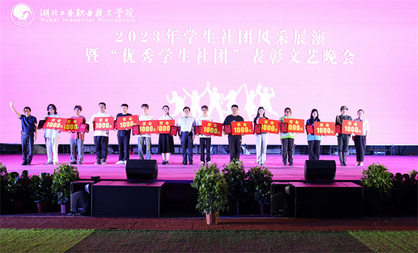 现场还表彰了在2022-2023学年获得“优秀学生社团”称号的国旗护卫队、青春e行志愿者服务队、大学生记者团、学生CAD协会、万木林合唱团等12个学生社团。