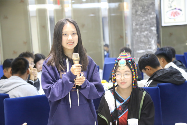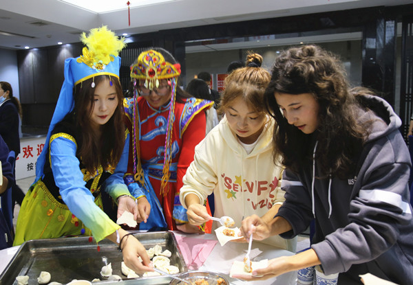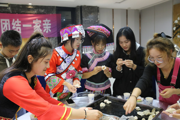 当日下午15:30,学校在南区食堂开展了喜迎国庆心连心·民族团结一家亲——少数民族学生座谈会活动。在现场,藏族、蒙古族、维吾尔族、塔吉克族等少数民族学生身着民族服饰,分享民族文化和特色风俗,载歌载舞共庆国庆。取皮、裹馅儿、封口……在包饺子环节,大家互相打趣、各显身手,包出了各式各样的饺子,欢声笑语不断。