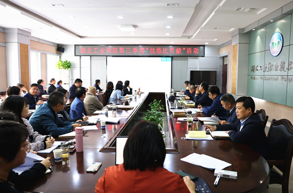 新闻网讯(文/曾晨 图/熊超)紧扣重点任务讲干货,晒成绩、找不足、明措施……10月8日,学校第三季度“拉练比贡献”活动在行政楼302会议室举行,通过现场观摩、互学互评,掀起了对标提升、比学赶超的浓厚氛围。校领导魏文芳、边疆、肖海华、毛义忠、郑强、胡昌龙、陈穗川、李辉,二级学院和相关职能部门负责人、校级督导等参加活动。拉练活动由副校长郑强主持。