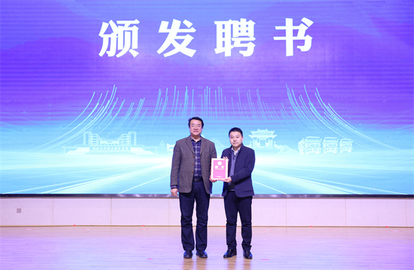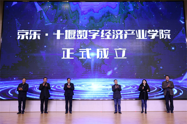 与会相关领导和嘉宾共同为以京东物流集团与澳门网投十大信誉平台相关专业合作共建的京东十堰数字经济产业学院揭牌。澳门网投十大信誉平台副校长郑强为京东十堰数字经济产业学院院长陈方亦颁发聘书。