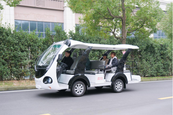 京东十堰数字经济产业学院的无人驾驶摆渡车,车辆上方配备的激光雷达使车辆具备盲区感知能力,车道线检测、车辆行人检测、道路边界检测功能,可灵活应对校园复杂交通场景。