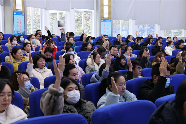 校党委委员、副校长郑强主持第一次代表大会第二次全体会议,宣读了主席团成员名单,胡昌龙任校社科联主席,沈玲、田运科、何玲玲任副主席,曾晨任秘书长。校党委委员、副校长、宣传部长、校社科联主席胡昌龙在讲话中表示,将与全体委员一起,在校党委的坚强领导下,按照省、市社科联的要求和校社科联章程的规定,主动作为、开拓创新,发挥好校社科联“团结引导、联络协调、服务管理”的职能,团结带领全校社科工作者旗帜鲜明讲政治、明确责任促联合、聚力发展树样板,为职业院校社科联如何“建、管、用”提供实践样本,为争创全国“双高计划”和职业本科学校贡献力量。